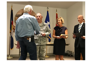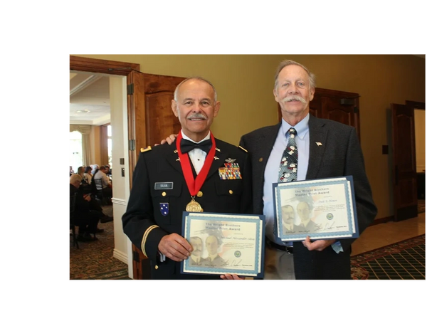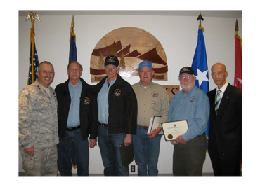 Rick Beaver, Carl Cavaluzzi, Dale House and Bill Robie, all members of the Rocky Mountain Chapter of the Vietnam Helicopter Pilots Association.  The Members received a distinctive commemorative lapel pin and a certificate signed by Governor John E. Hickenlooper, Governor of Colorado.